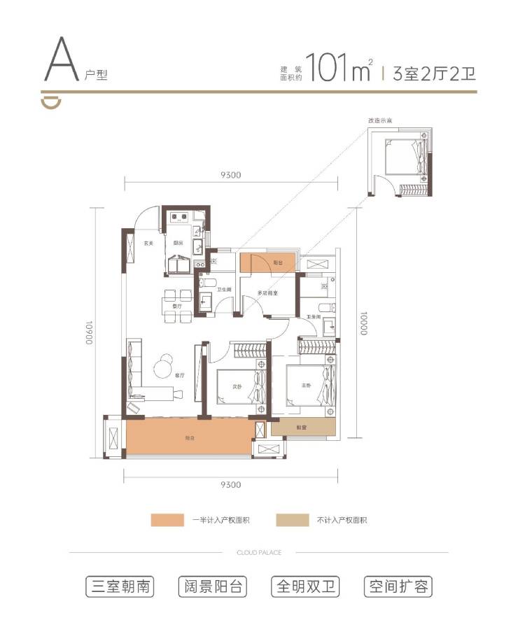 刚需三居室户型,建筑面积适中,空间利用率高,是年轻家庭置业的理想选择。该户型采用南北通透设计,客厅与南向阳台相连,不仅拓展了视觉空间,更让充足的阳光和新鲜空气充斥室内,让房间时刻保持明亮通透。主卧和次卧均朝南,采光条件优越,主卧带独立飘窗,闲暇时可在此读书、观景,享受独处时光;次卧空间方正,可根据需求打造为儿童房或客房,实用性强。厨房采用 U 型布局,操作台面宽敞,动线合理,洗、切、炒一气呵成,同时预留了冰箱位置,储物空间充足;卫生间干湿分离设计,有效保持室内干燥整洁,提升使用舒适度。