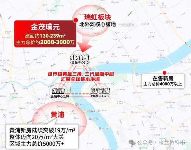 先来看新房市场:我们将视线聚焦到市中心的中心-来看外滩-陆家嘴-北外滩世界级黄金三角周边的新房价格格局:
